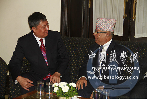 安七一副总干事与尼泊尔前总理尼帕尔交谈