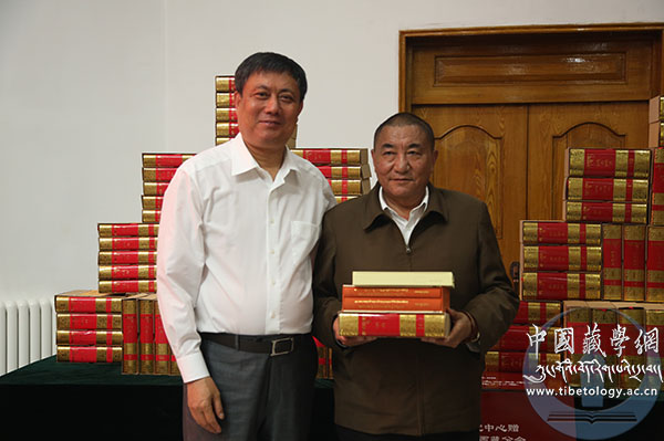 安七一书记向西藏自治区政协副主席、中国佛教协会西藏分会会长、西藏佛学院院长 珠康・土登克珠活佛赠书