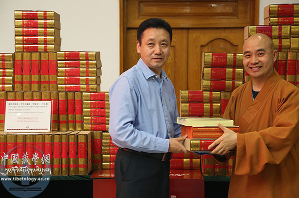 郑堆总干事向中国佛教协会驻会副会长 宗性法师赠书