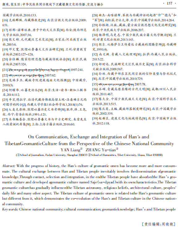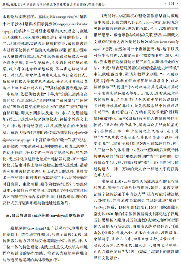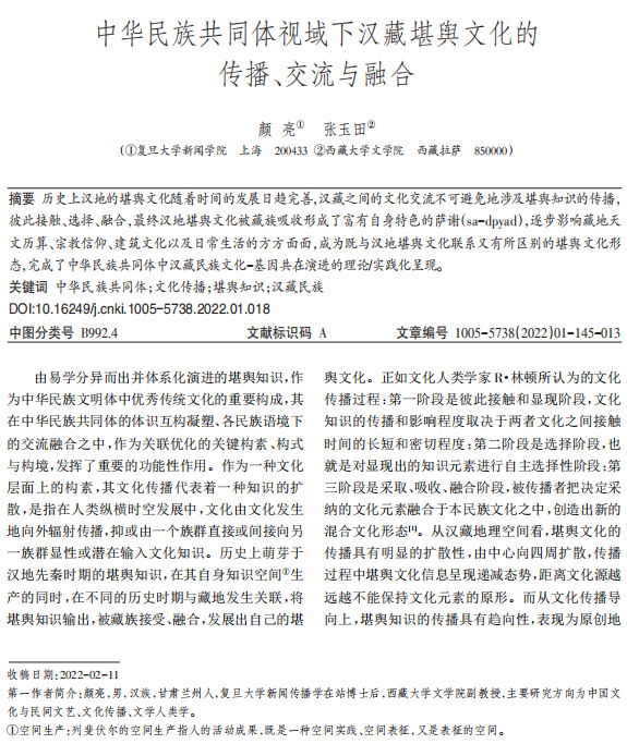 关键词:中华民族共同体;文化传播;堪舆知识;汉藏民族