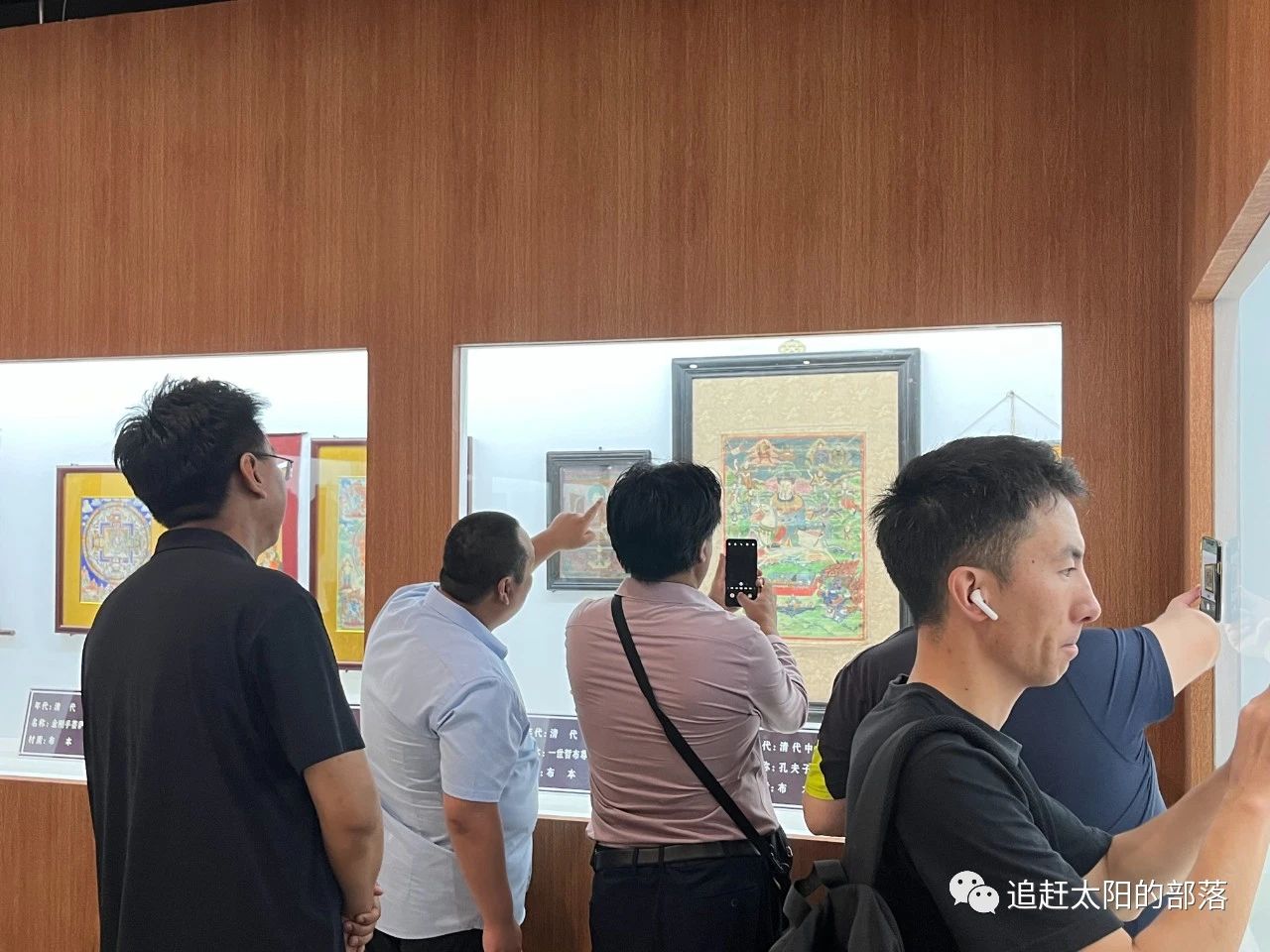 在“唐卡瑰宝”展厅,各位专家进行了深入交流,蒙古贞文化博物馆馆长海春生详细讲解了孔夫子唐卡的年代及构图内容,专家们讨论热烈,表示此次参观收获很多。