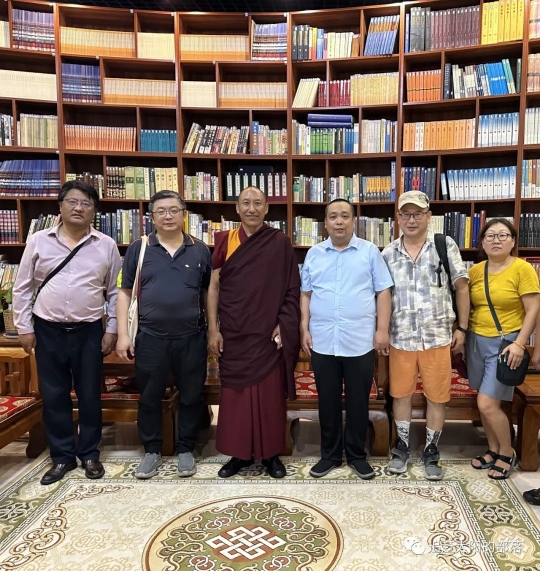 应蒙古贞文化博物馆馆长海春生邀请,8月18日,中国藏学研究中心研究员陈立健、中国台北故宫博物院研究员刘国威、西藏昌都丁青寺活佛伟色金巴、兰州大学教授阿旺加措和蒙古国博格达汗宫研究员NYAMMYAGMAR等11人赴该博物馆参观调研。