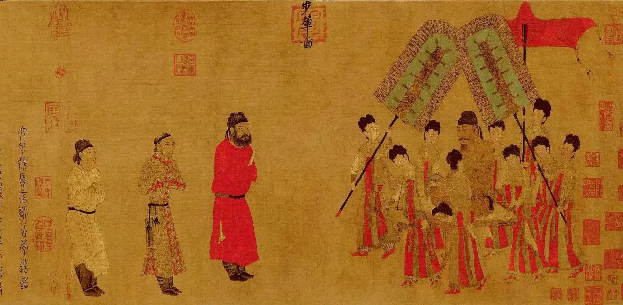唐代阎立本《步辇图》绢本,现存于北京故宫博物院,记录了汉藏民族交往的重要事件。