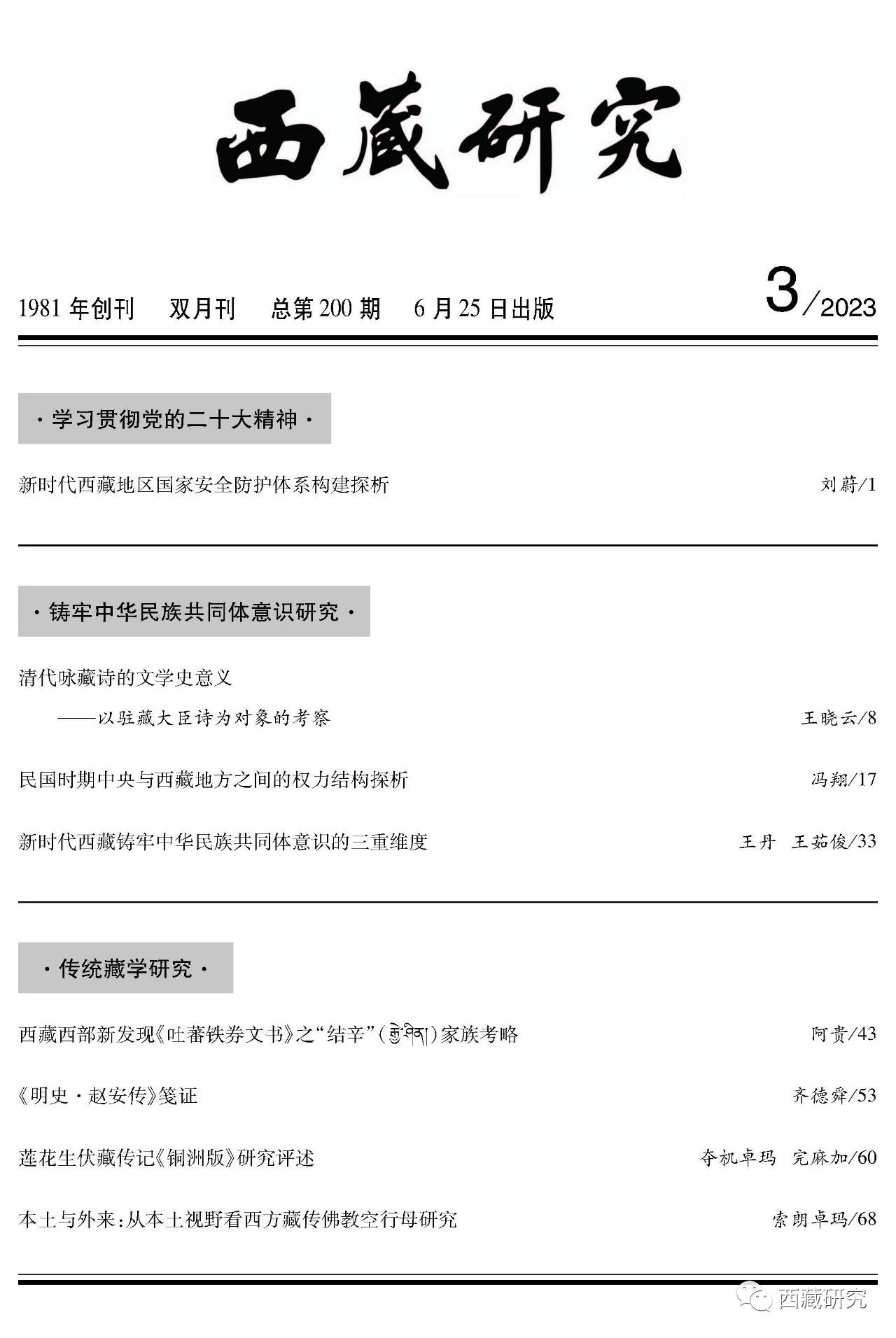 【期刊】《西藏研究》(汉文版)2023年第3期目录及重点文章
