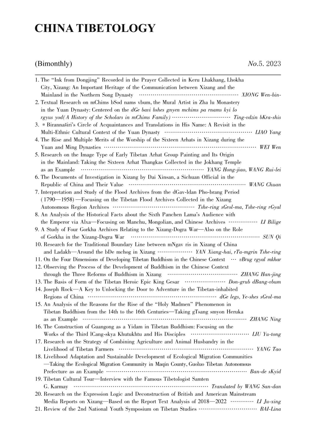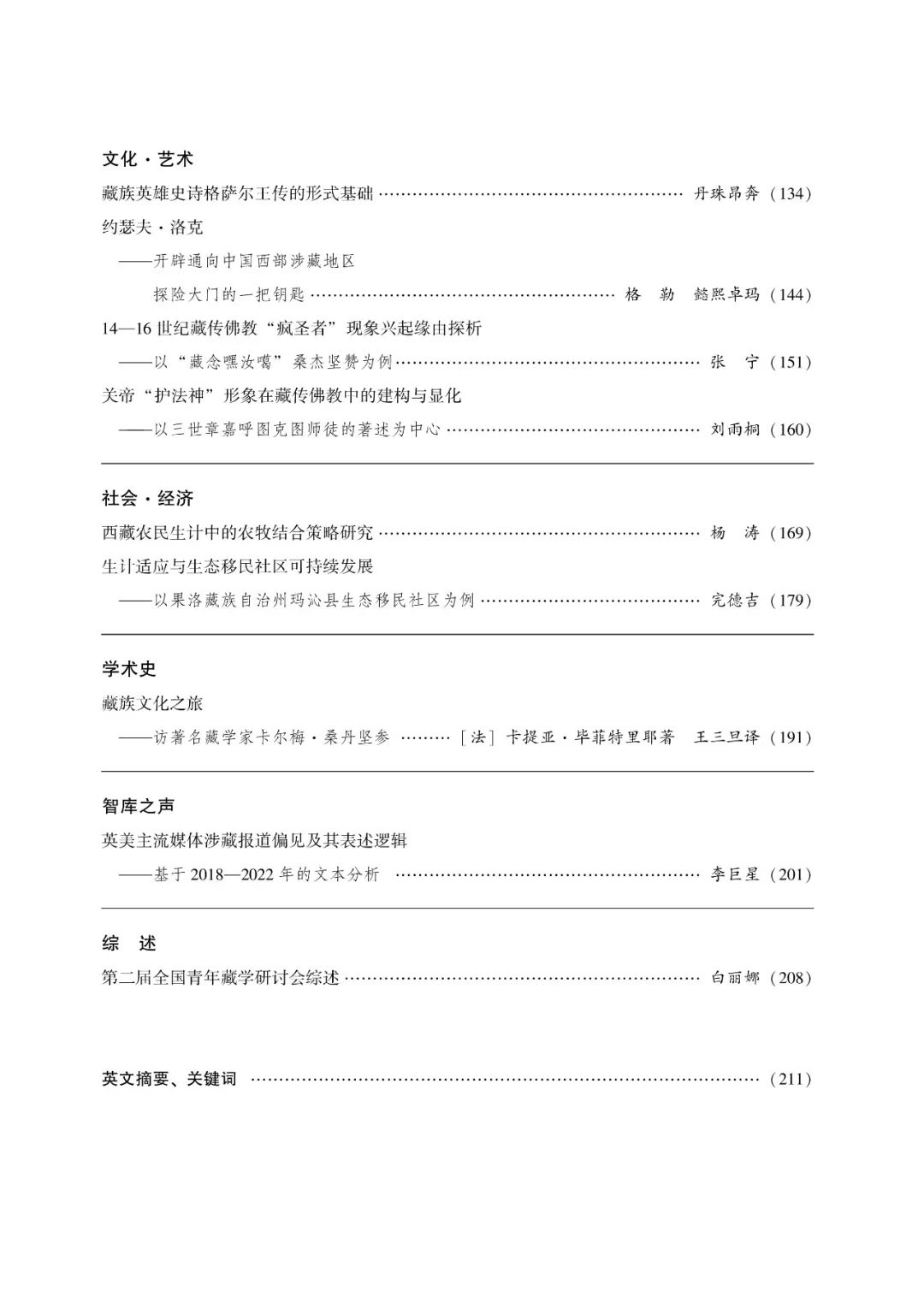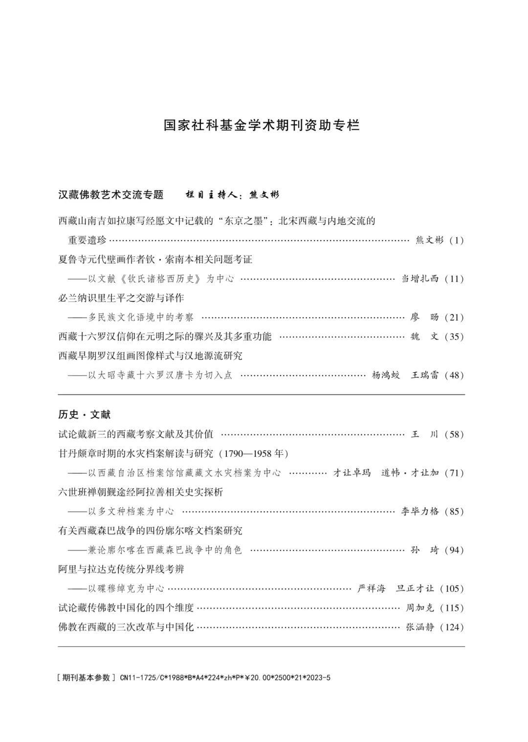《中国藏学》2023年第5期目录