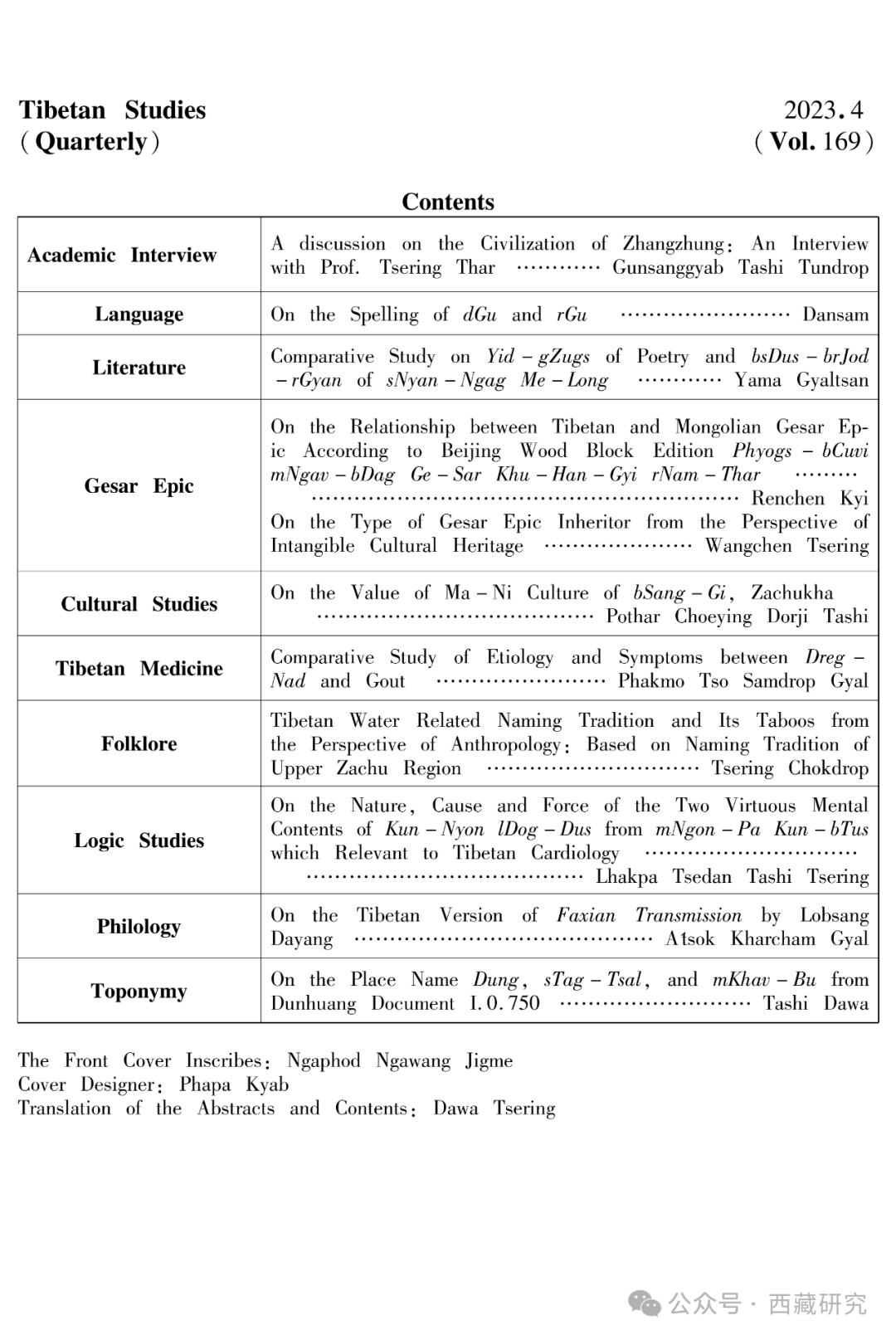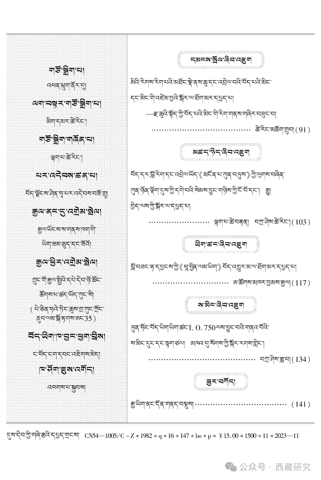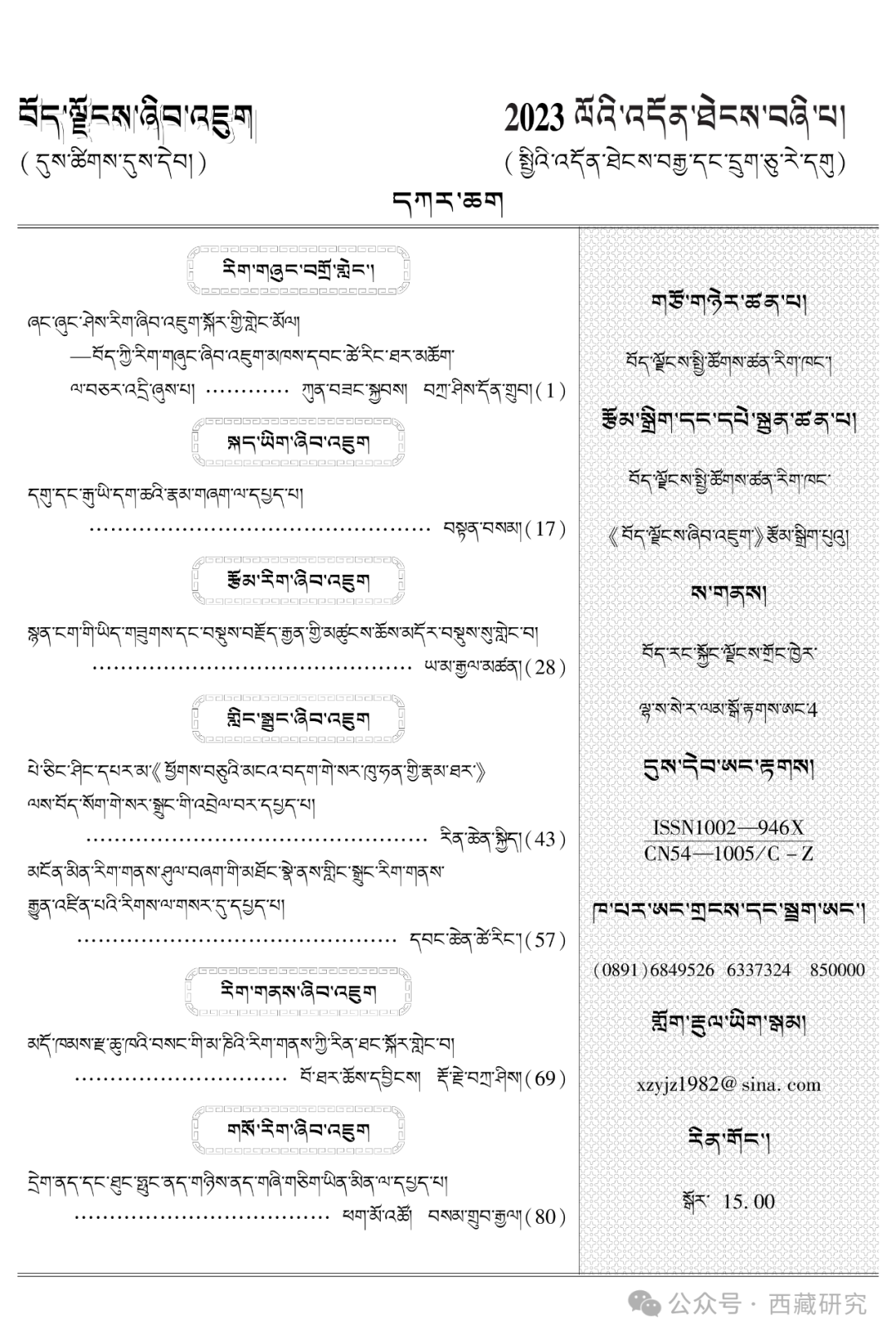 【期刊】《西藏研究》(藏文版)2023年第4期目录