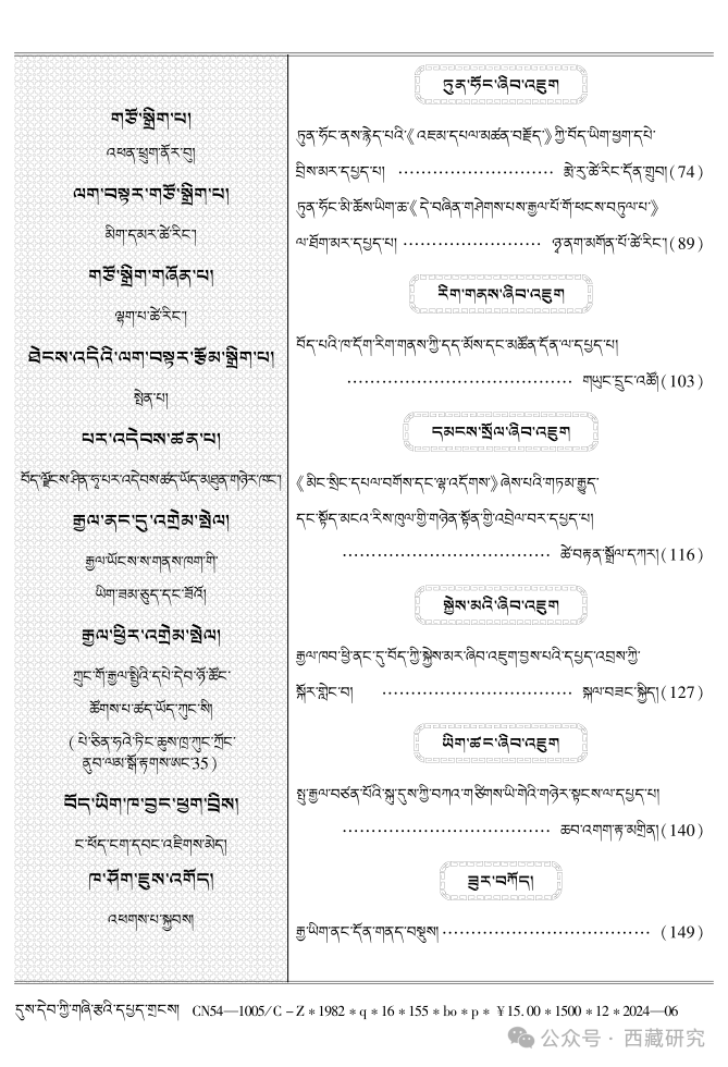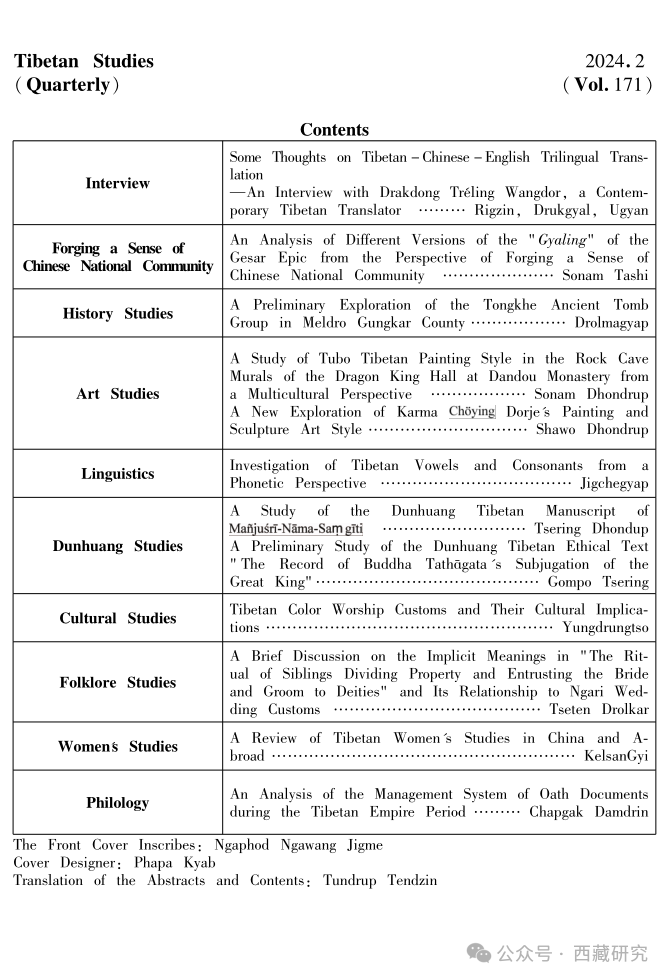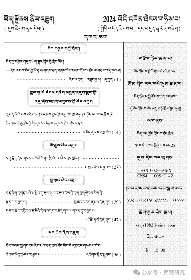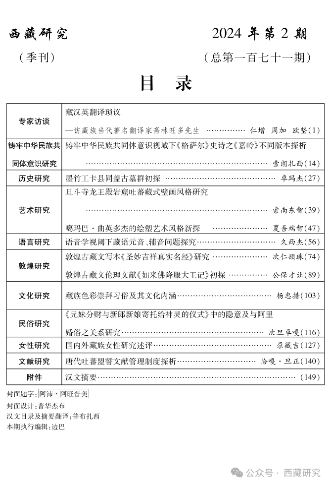 【期刊】《西藏研究》(藏文版)2024年第2期目录