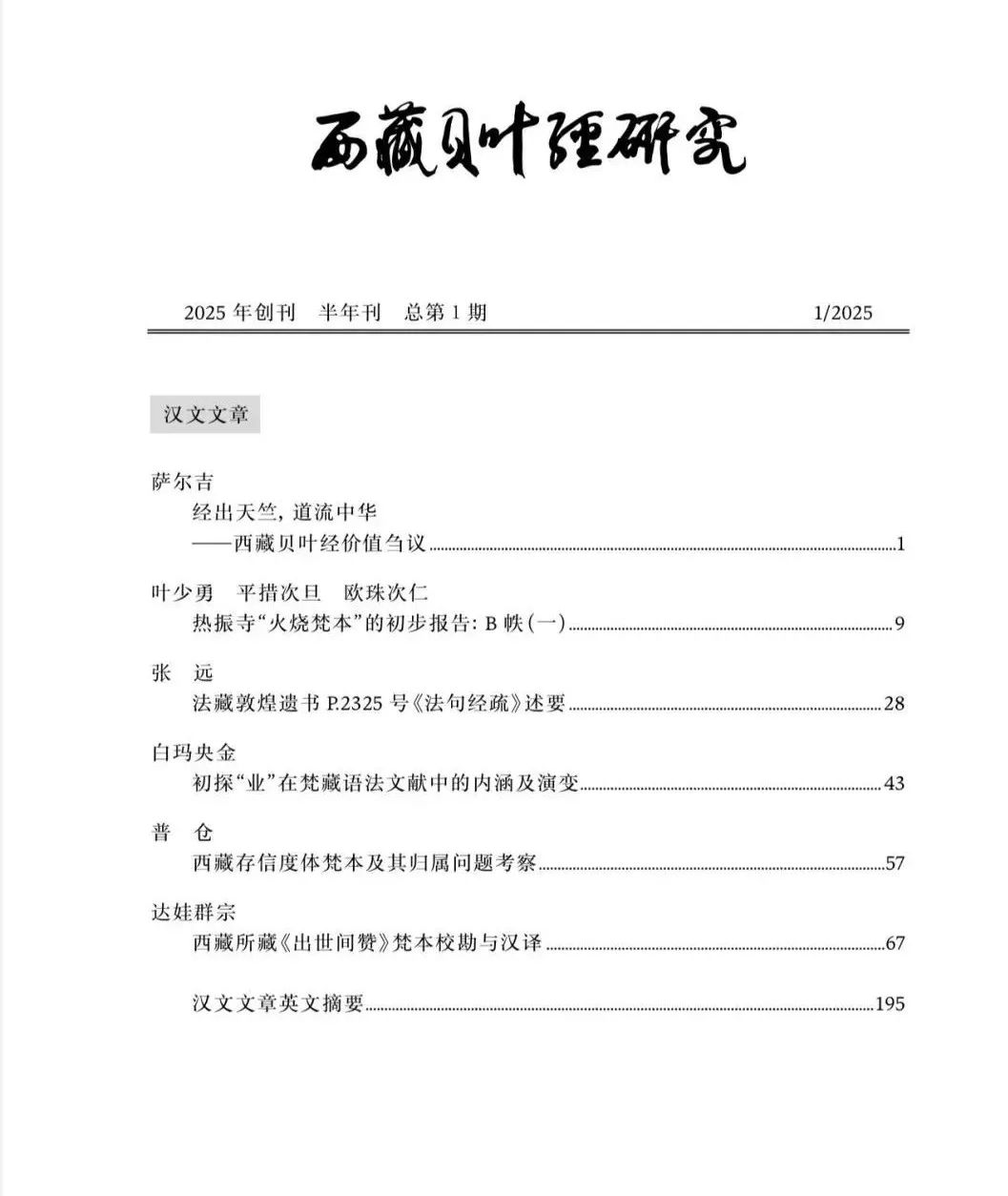《西藏贝叶经研究(藏文、汉文)》2025年创刊号(总第1期)