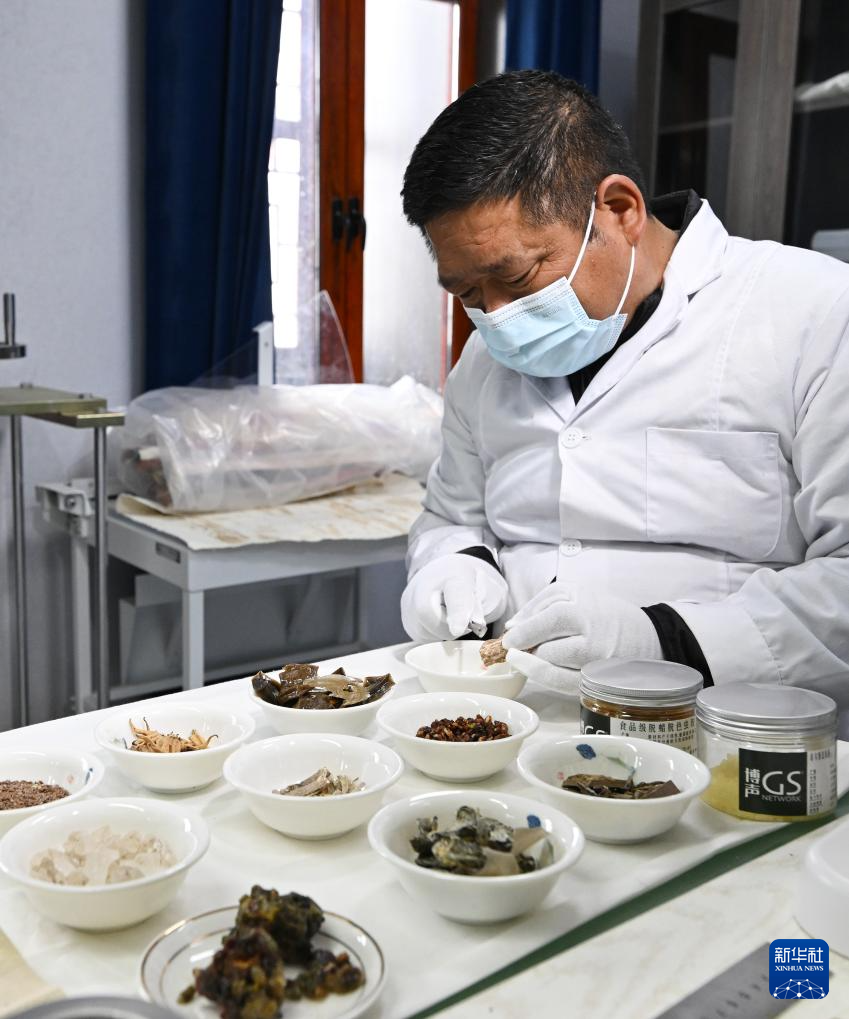 布达拉宫贝叶经实验性修复小组实验室工作人员对用于贝叶修复的粘合剂原料进行加工(5月25日摄)。新华社记者李贺摄