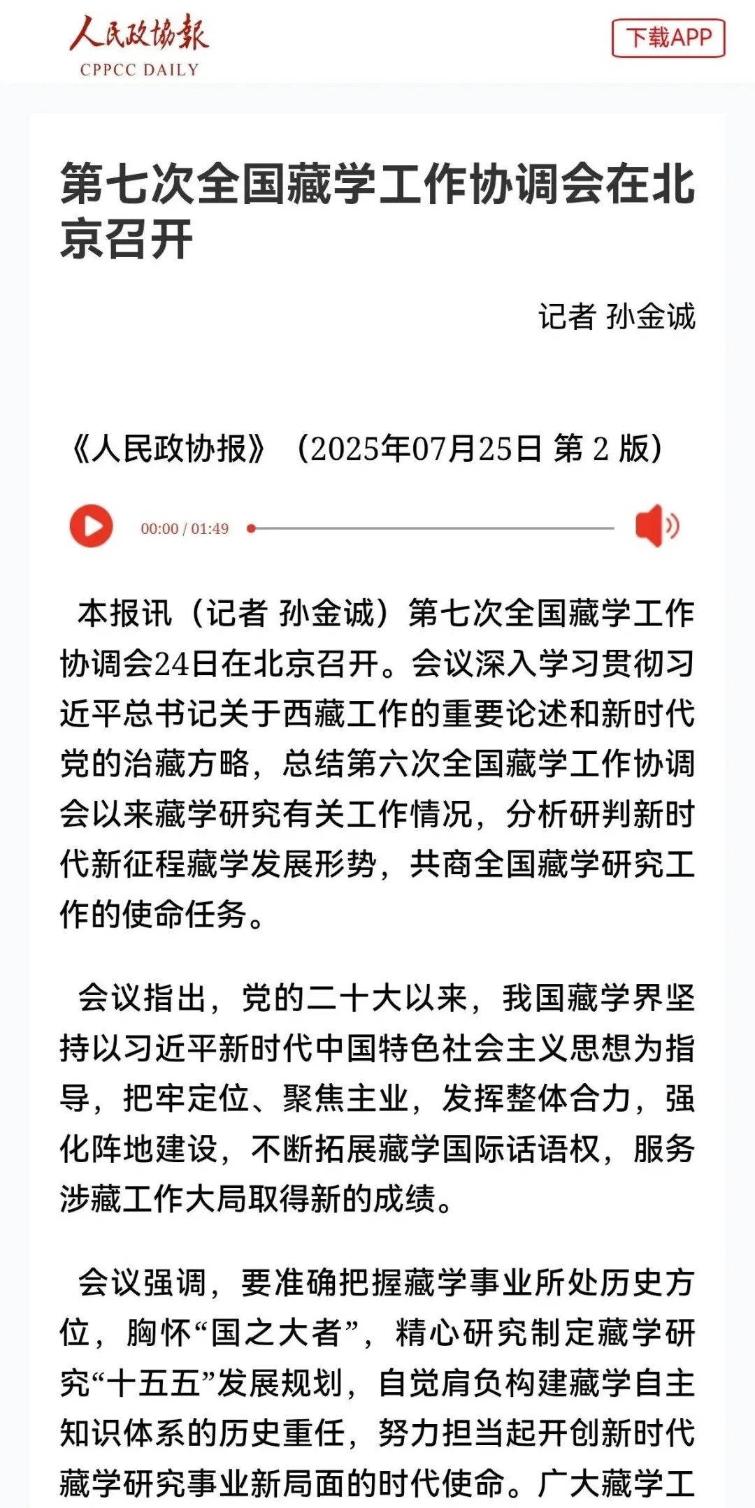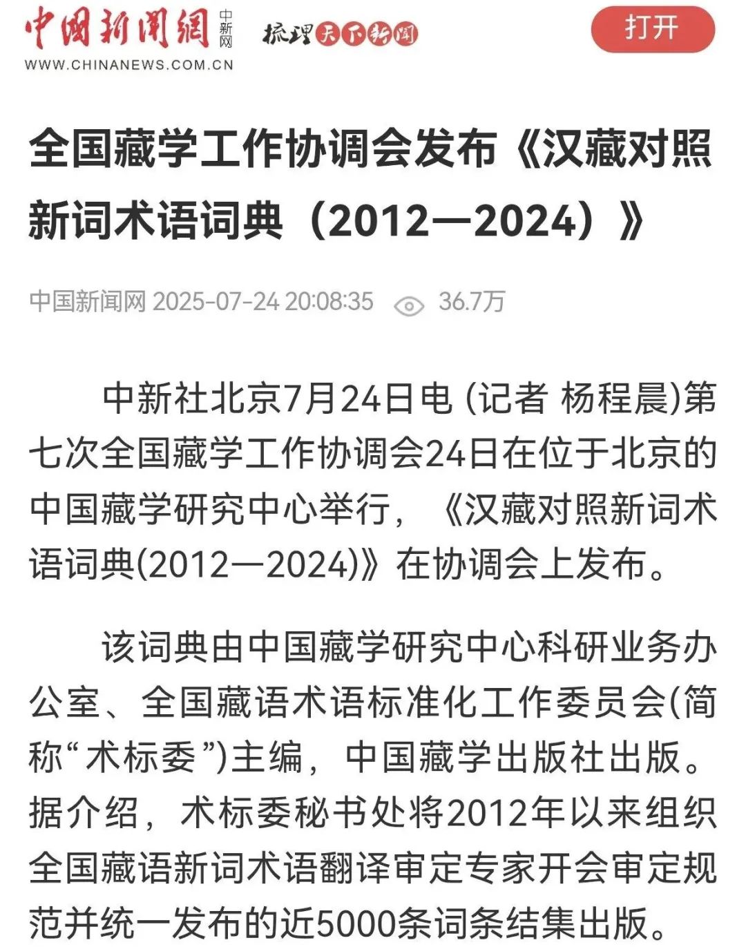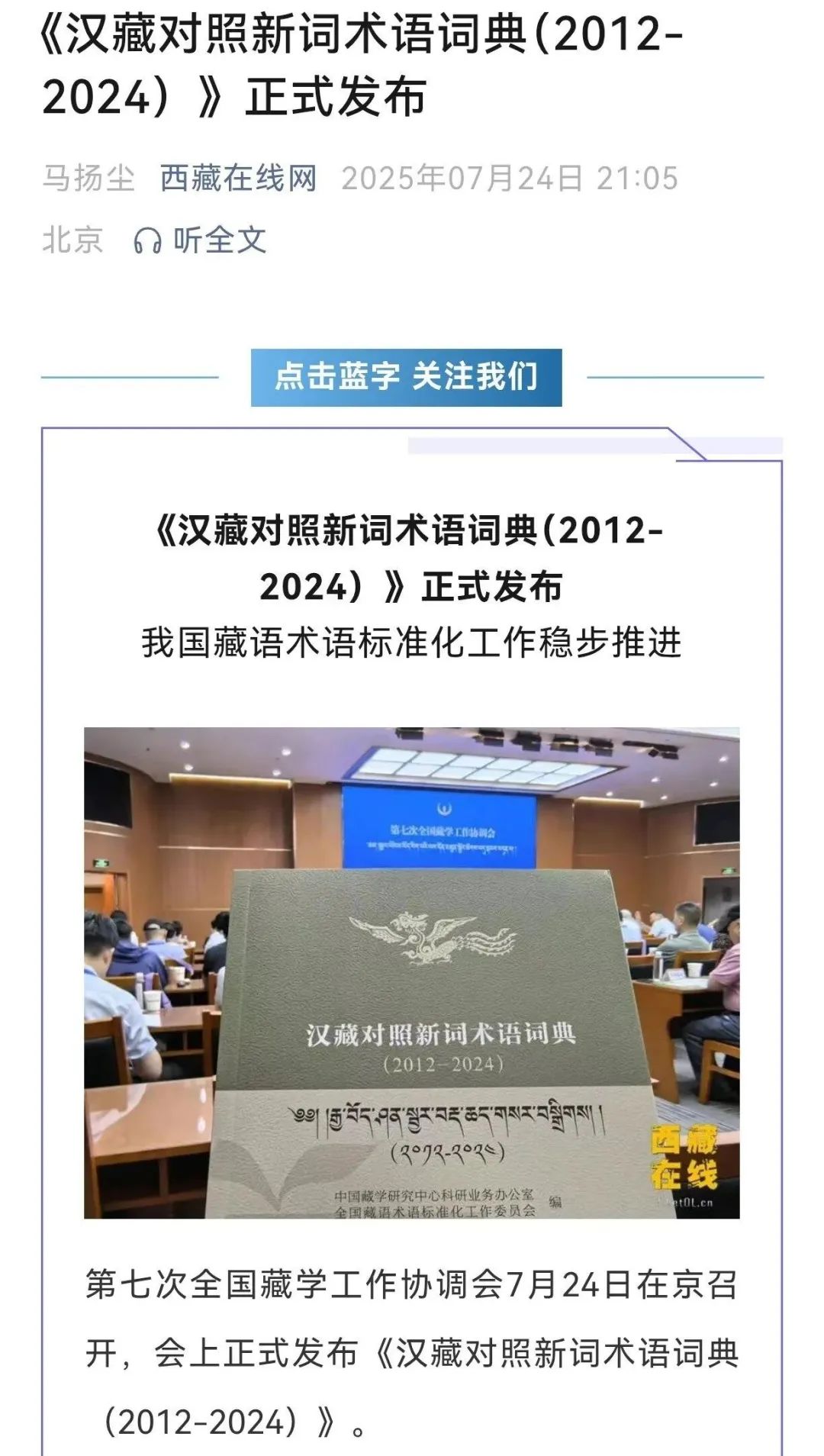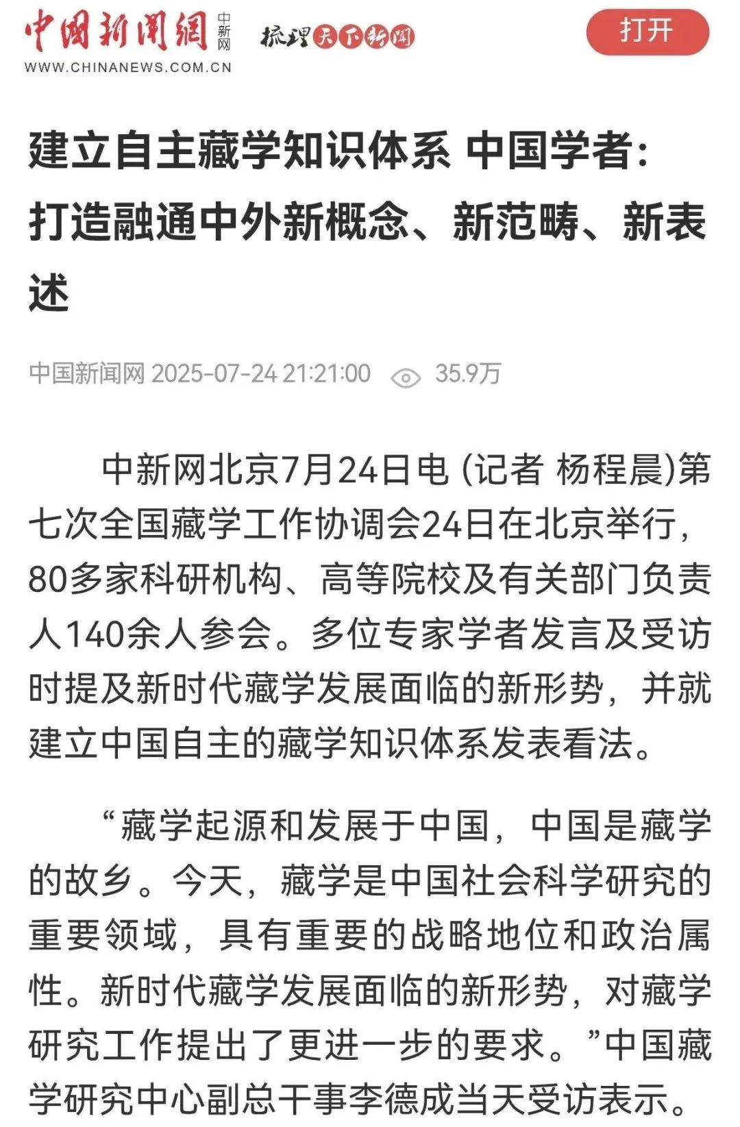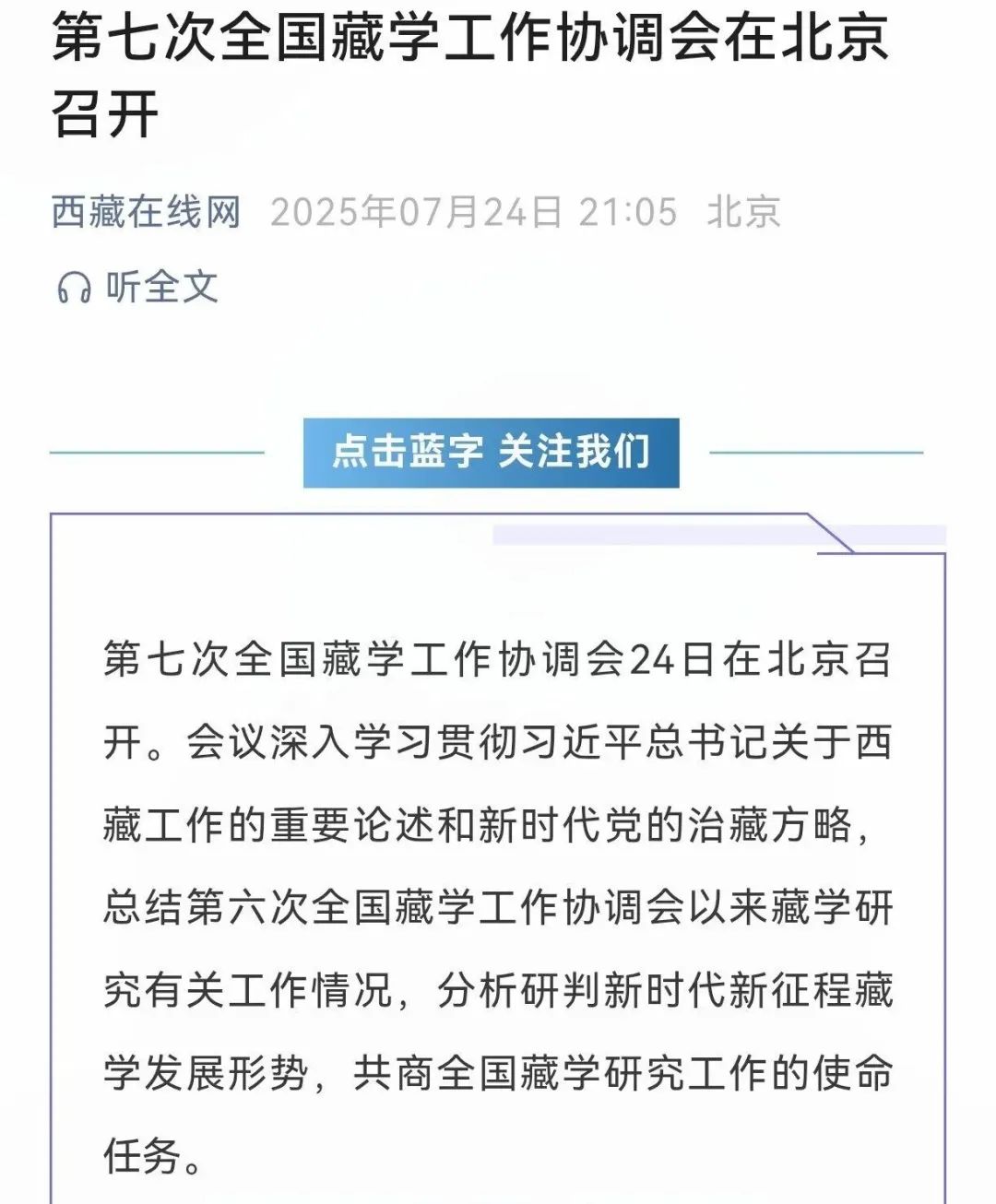 7月24日,第七次全国藏学工作协调会在北京召开。近日,人民日报海外版、新华社、央视新闻、光明日报、人民政协报、中国新闻社、中国青年报、中国网、央广总台中国藏语广播网、中国西藏网、西藏在线网、今日中国等主要媒体,运用文字、图片、视频等多种形式,集中对本次会议进行全方位报道,展现了广大藏学工作者始终把牢藏学研究的正确政治方向,以更强的战略意识提升服务党的涉藏工作能力和水平,积极探索构建涉藏对外交流和国际传播新机制,不断激发创新活力,奋力书写藏学工作新篇章的生动实践。