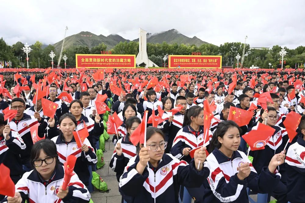 ▲西藏自治区成立60周年庆祝大会现场。来源:新华社