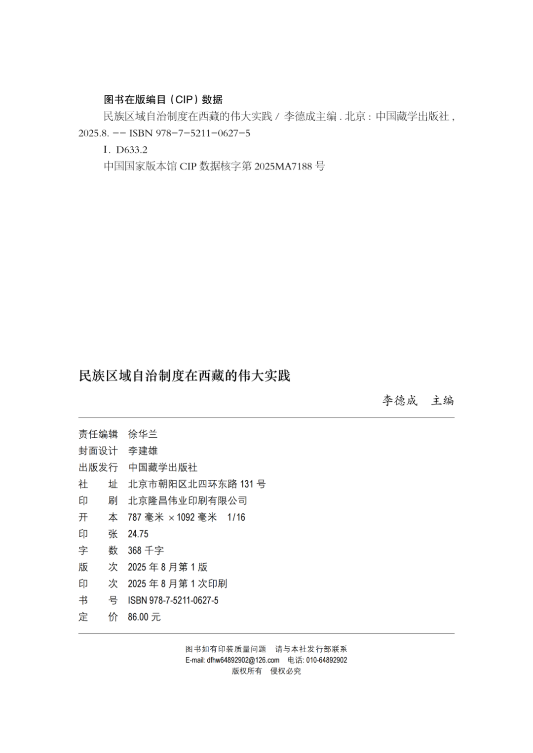 《民族区域自治制度在西藏的伟大实践》,李德成主编,中国藏学出版社2025年8月出版