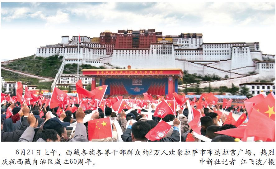 习近平总书记率中央代表团出席西藏自治区成立60周年庆祝活动时指出,“要按照系统推进我国宗教中国化、加强宗教事务治理法治化的要求,引导藏传佛教与社会主义社会相适应”。西藏自治区成立60周年来,全面贯彻落实党的宗教工作基本方针,依法加强宗教事务管理,充分尊重和保障宗教信仰自由,推动全区宗教和顺、社会和谐、民族和睦,宗教中国化水平持续提升。