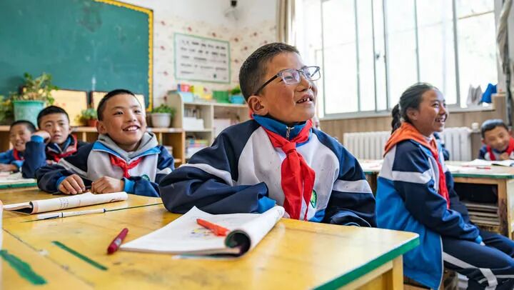 2024年9月3日,西藏林芝市工布江达县娘蒲乡中心小学五年级的学生在上课。新华社记者丁增尼达摄