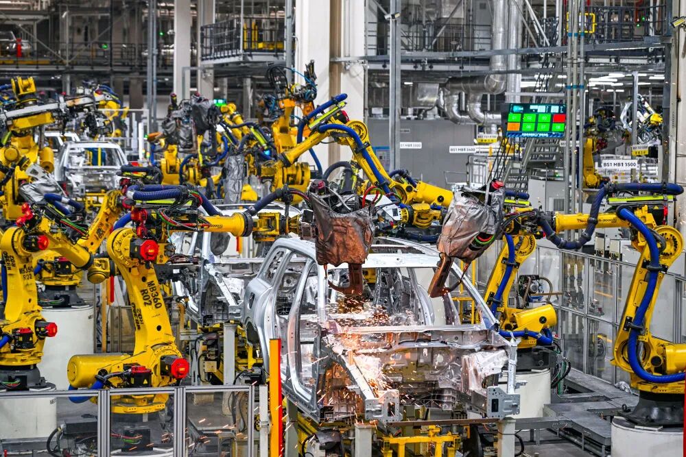 2025年9月19日在位于重庆市两江新区的赛力斯汽车超级工厂拍摄的自动化生产作业现场(无人机照片)。新华社记者王全超摄