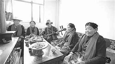 拉孜县热萨乡强公村群众在新居内共度重阳节。旦增嘎瓦摄