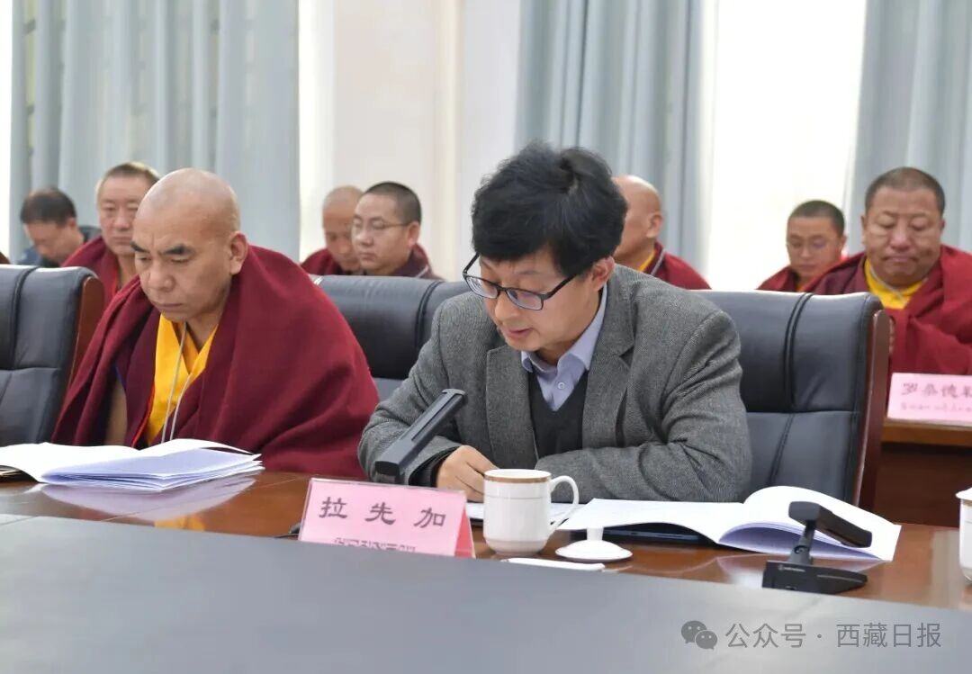 中国佛教协会驻会副会长常藏,自治区政协副主席宗洛·向巴克珠、萨龙·平拉,青海省政协副主席赛赤·确吉洛智嘉措出席。自治区政协副主席珠康·土登克珠主持。
