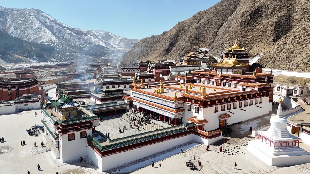 2025年2月28日航拍的甘肃甘南拉卜楞寺。中新社记者九美旦增摄