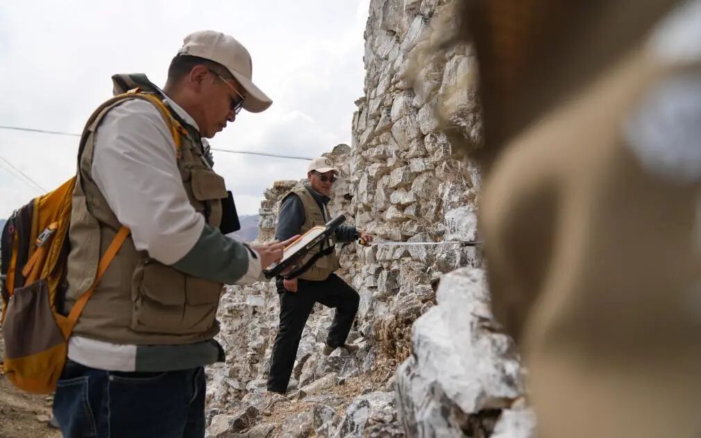 普查队员在西藏墨竹工卡县曲果岗塔群遗址现场开展数据采集。(2024年4月11日摄)新华社记者晋美多吉摄