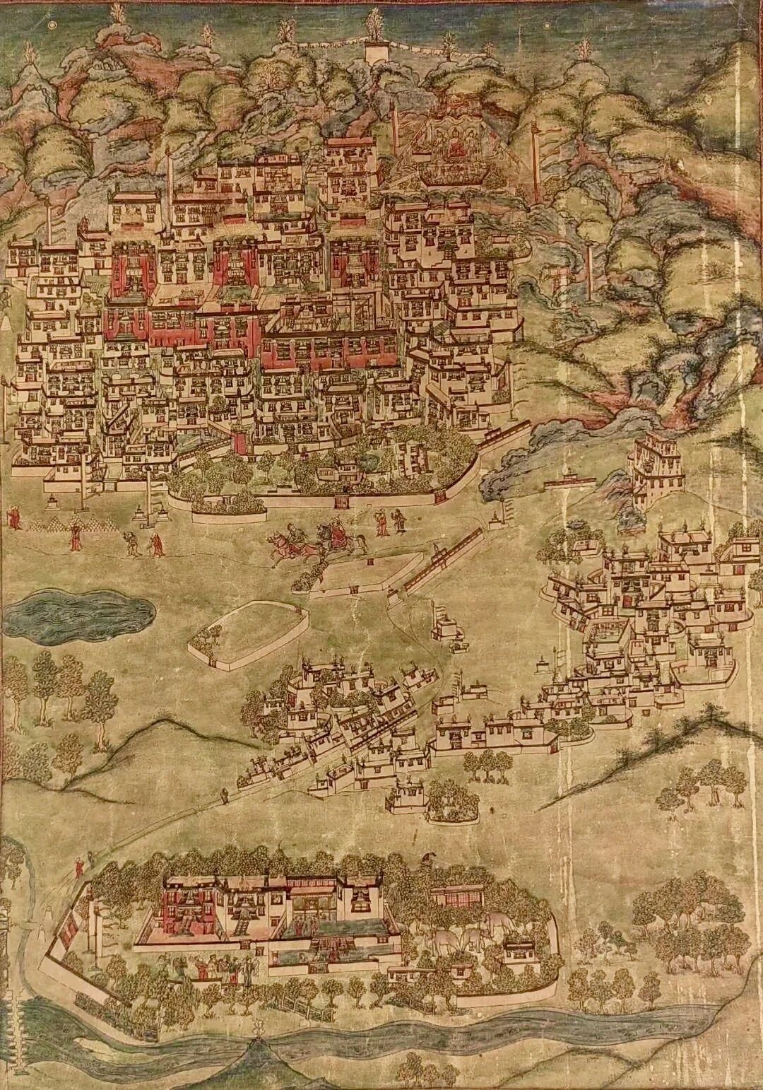 ▲七世班禅时期扎什伦布寺全图,扎什伦布寺藏。
