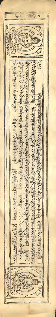 除去承载医学理论文本的一脉相承,《四部医典》自扎塘版以来附有精美的诸佛与人物版印插图,主要集中于每章首页与第二页两端,作为装饰或礼敬之意。北京与蒙古地区延续了西藏《四部医典》版印插图配置,但因其地域特点也作出了相对应的调配。以热河普宁寺与北京嵩祝寺版本为例,将西藏《四部医典》中常见的赞普、藏医名家、掘藏师与译师等人物插图替换为梵文字,在保留西藏《四部医典》每章首页药师八佛的插图配置与宇妥·云丹贡布像外新增加北京版《四部医典》末页跋文的撰写者阿佳洛桑丹贝坚赞像。阿佳洛桑丹贝坚赞为热河普宁寺蒙古族藏传佛教高僧,该形象也是《四部医典》自成书以来蒙古族人物像首次见于其插图中,同样延续在蒙古地区刊印的瑞应寺版与布里亚特版的版印插图中,充分体现出《四部医典》作为民族医学交流的桥梁所体现出来的包容性与多元融合的载体。