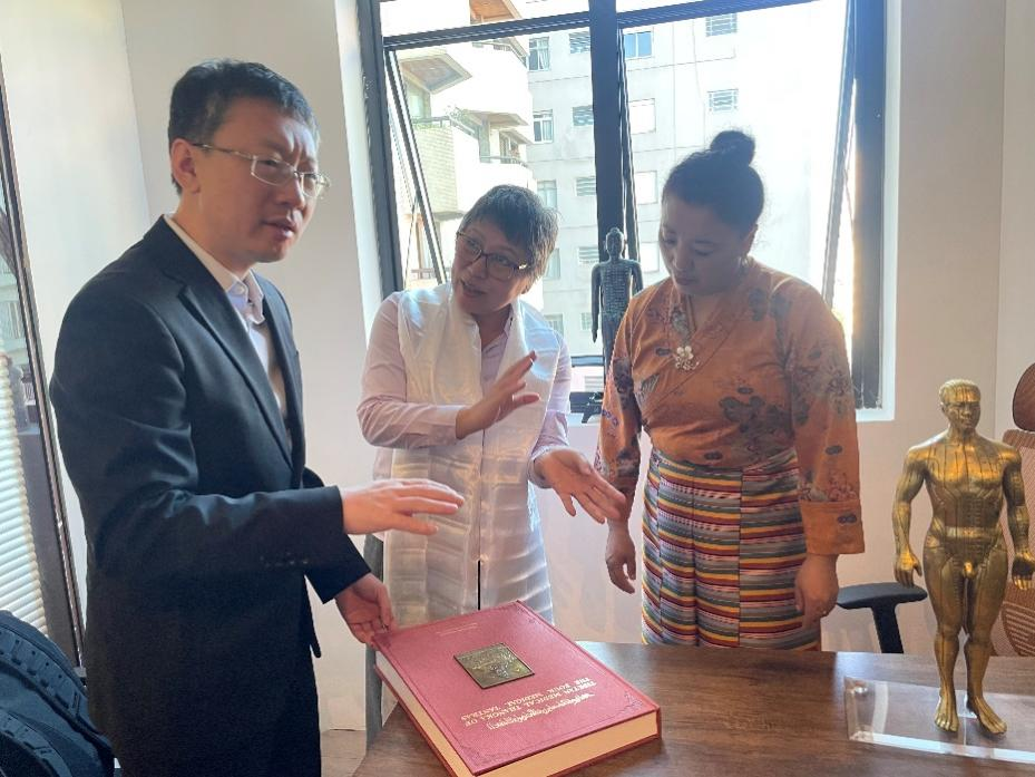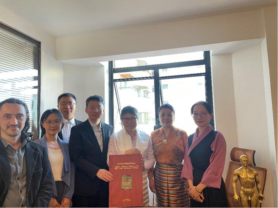 代表团一行赴中国巴西中药国际合作基地开展座谈交流,向该协会会长方芳赠送了《四部医典》,重点介绍了该典籍的学术价值,其系统的理论体系与临床实践经验引发巴西同行广泛兴趣。双方就中医药、藏医药在代谢性疾病治疗中的应用以及对中医药、藏医药文化的国际推广等方面达成初步共识。