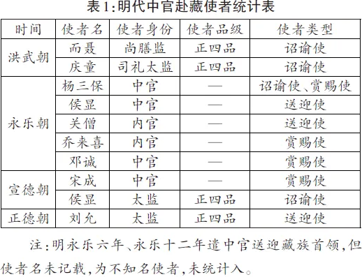 ▲明代中官赴藏使者统计(图片来源:西藏民族大学学报)