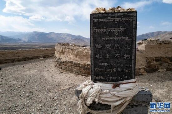这是在江孜宗山古堡拍摄的跳崖英雄纪念碑。新华社记者孙瑞博摄