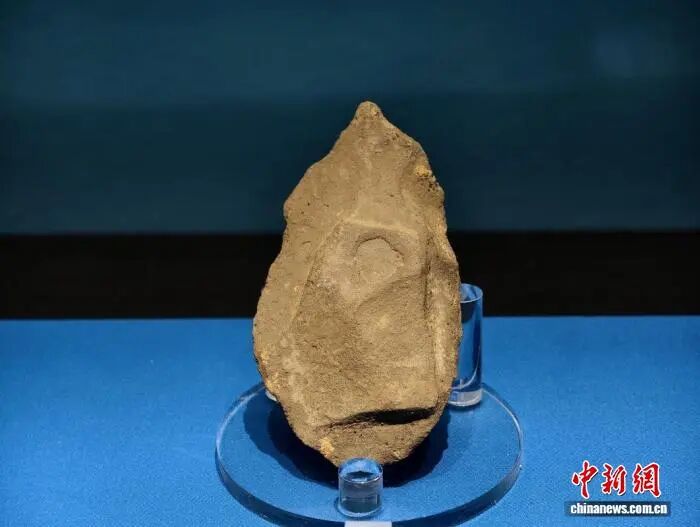 12月18日,四川博物院新展“雪山之巅大河之源——青藏高原的文明崛起与民族融合”开幕,图为四川省甘孜州稻城县皮洛遗址出土的手斧。(四川博物院供图)