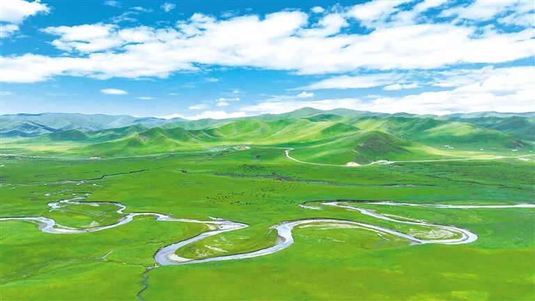 ▲甘南州玛曲县阿万仓湿地美景如画。 新华社记者 陈斌摄