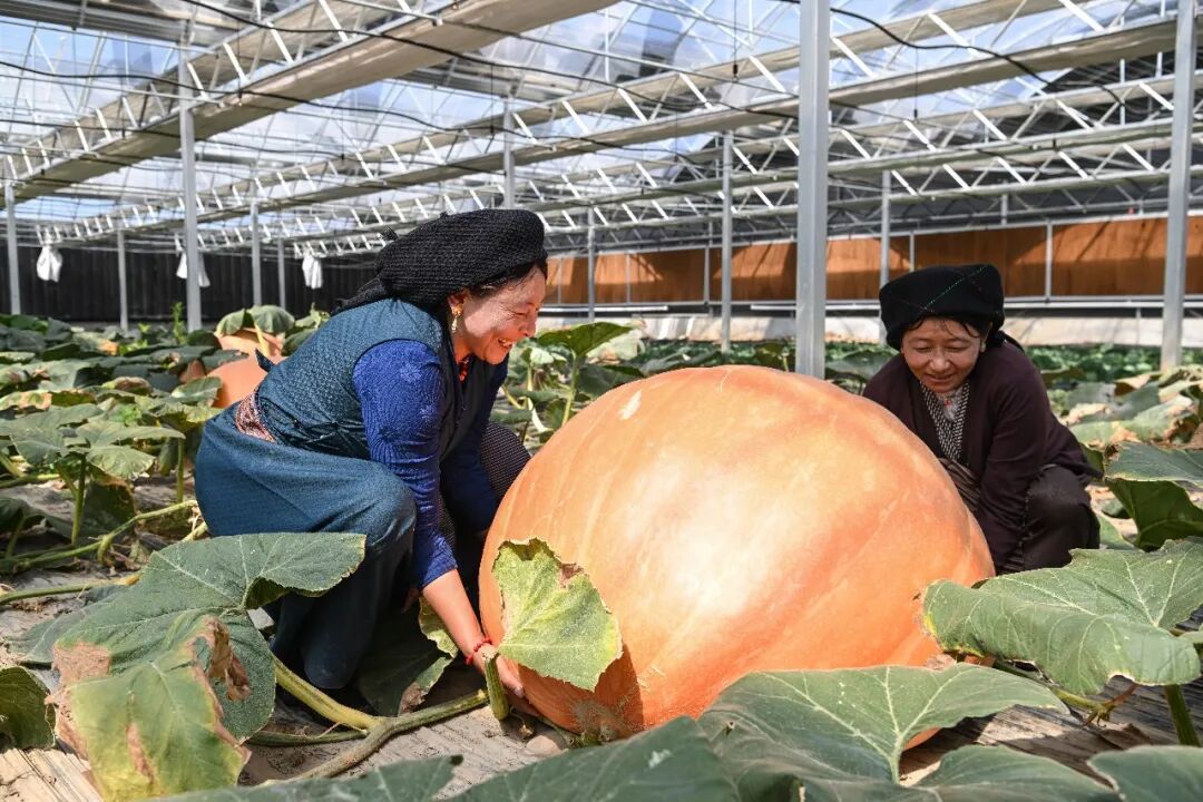 西藏墨竹工卡县现代化农业示范园里种植的巨型南瓜。(资料图)中新社记者贡嘎来松摄