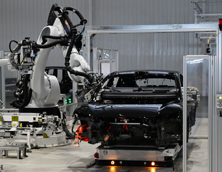 2025年7月1日在合肥市新桥智能电动汽车产业园蔚来第二工厂拍摄的新能源汽车生产线。新华社记者周牧摄