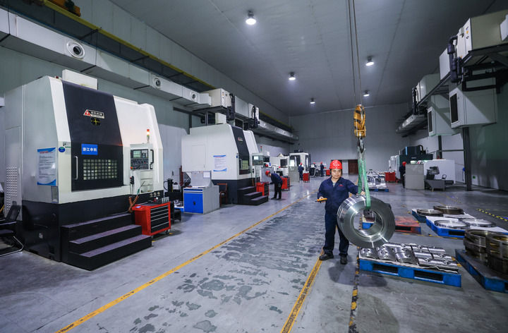 在浙江省诸暨市璜山镇的申科滑动轴承股份有限公司轴承智能车间内,自动化设备在加工轴承(2026年1月20日摄)。新华社记者徐昱摄