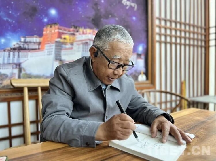 图为2023年10月巴桑罗布在个人著作《仓央嘉措略传》新书发布会上为读者签名 德吉卓玛摄