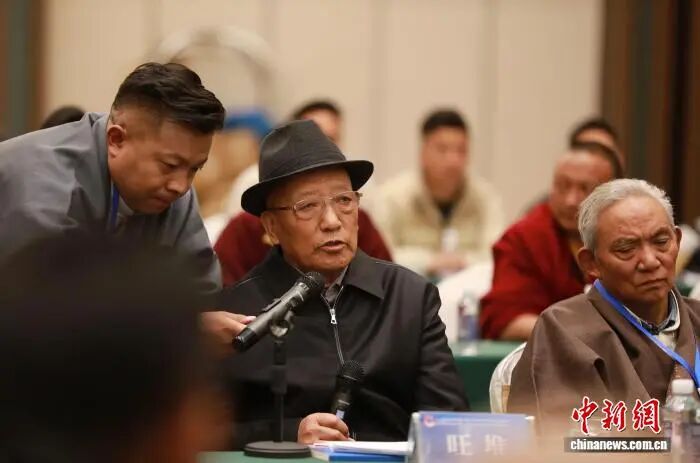 图为国医大师旺堆在直孔派藏医历算古籍收集整理专家研讨会上发言。格桑摄
