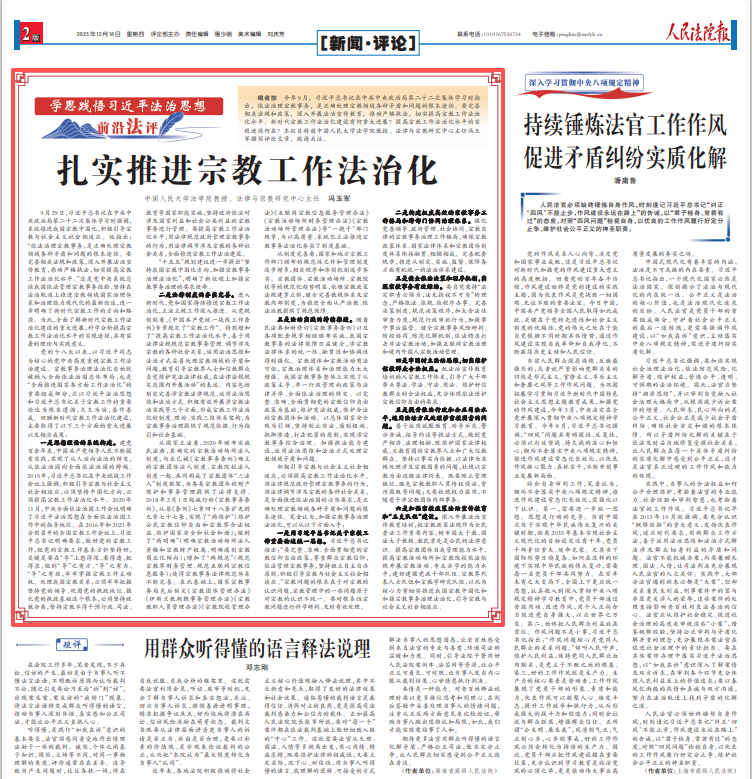 (来源:《人民法院报》2025年12月16日第2版,作者冯玉军系中国人民大学法学院教授、法律与宗教研究中心主任)