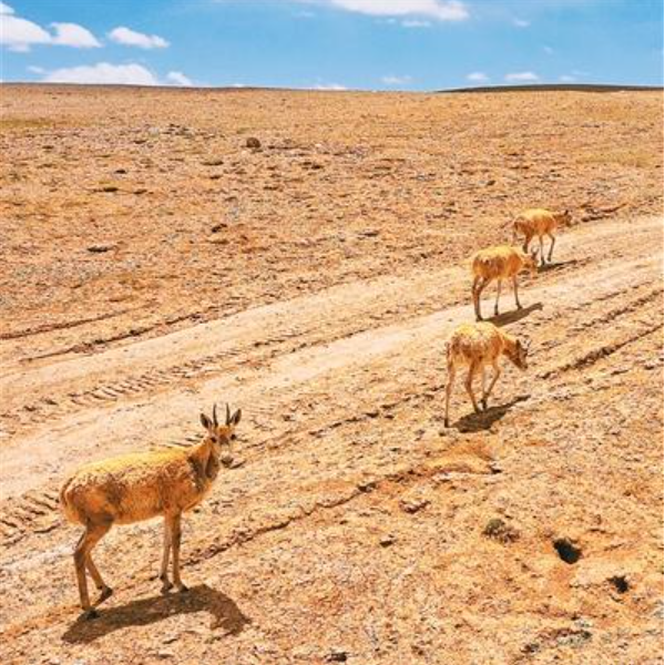 五道梁地处藏羚羊迁徙的关键节点,109国道3002公里处的迁徙专用通道,是藏羚羊夏季往返卓乃湖产崽地与栖息地的必经之路。每年7月中下旬,完成产崽的雌性藏羚羊携幼崽返程,这里便迎来最忙碌的守护时刻。为了让胆小敏感的藏羚羊安全穿越公路,守护者们将“静音守护”做到极致:“只要发现藏羚羊在通道附近集结,我们会第一时间实施临时交通管制,让青藏线彻底切换到‘静音模式’。”