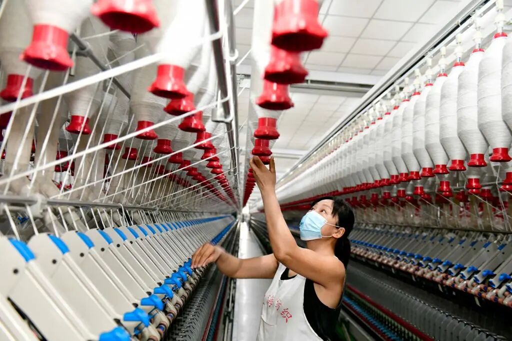 在山东省菏泽市郓城县蓝翔纺织有限公司,工作人员在织机前忙碌(2025年3月12日摄)。新华社记者郭绪雷摄
