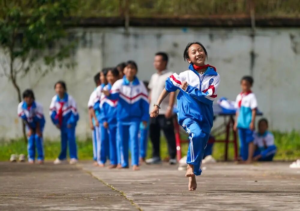 在云南省普洱市孟连傣族拉祜族佤族自治县,腊福小学学生课间在操场进行奔跑接力比赛(2025年9月15日摄)。新华社记者陈欣波摄