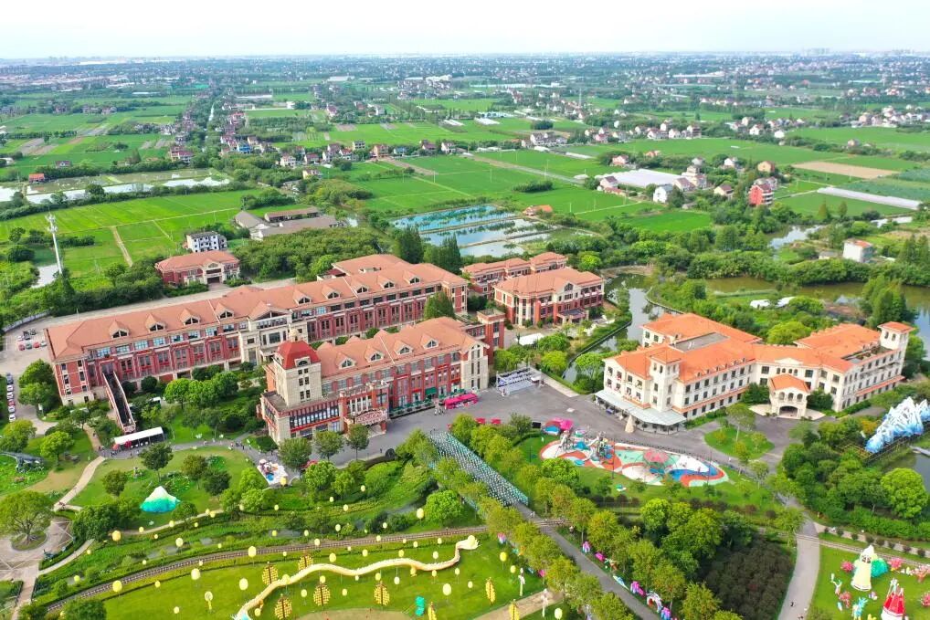 在浙江省嘉兴市嘉善县缪家村拍摄的歌斐颂巧克力小镇(2025年8月7日摄,无人机照片)。新华社记者毛竹摄