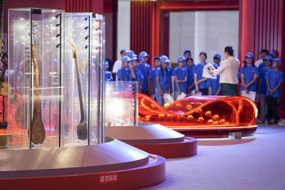 ▲2025年7月18日,30余名参加“石榴籽一家亲”研学营的戍边工作人员子女在北京民族文化宫参观。新华社记者邢广利摄