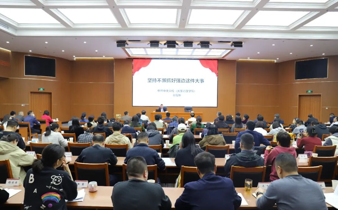 3月25日,中国藏学研究中心举办2026年第一期意识形态工作专题辅导报告会,邀请中央党校(国家行政学院)国际战略研究院亚太与非洲研究所副所长孙现朴副教授,以“坚持不懈抓好强边这件大事”为题作辅导报告。藏研中心党组书记陈宗荣,总干事、党组副书记郑堆,党组成员、副总干事刘威出席报告会,各部门负责同志和全体党员干部参加学习。