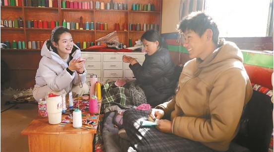 为深入了解堆绣,记者循着“拉萨策门林民族手工传承中心”的指示牌,来到夺底村一处僻静的拐角院落。这里,是德吉的工作室,也是技师们的家园。