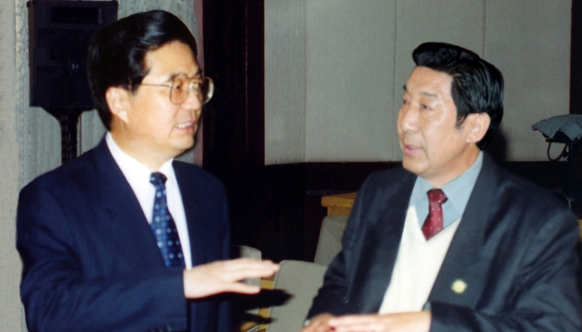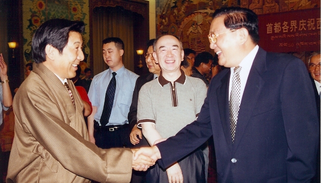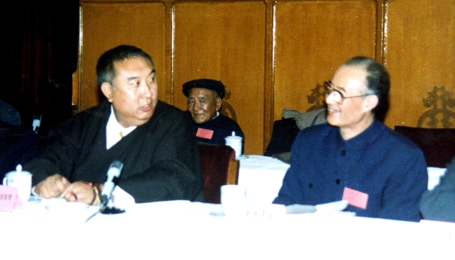 2000年10月26日 中央政治局常委、国家副主席胡锦涛与拉巴平措总干事交谈