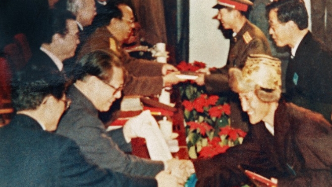 1991年1月24日 中共中央总书记江泽民为格勒颁发“做出突出贡献的中国博士学位获得者”荣誉称号