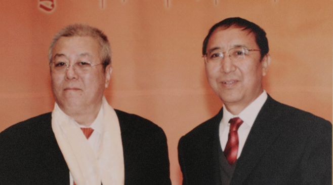 时任总干事拉巴平措与藏研中心学术顾问季羡林教授