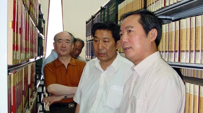 2002年4月 全国政协副主席、中央统战部部长王兆国在藏研中心调研